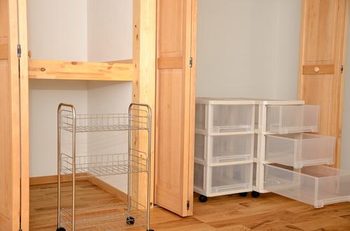木製は耐久性があり、収納できるものの種類が幅広い。すでに収納前から重さがあるため、大きくて丈夫なキャスタ