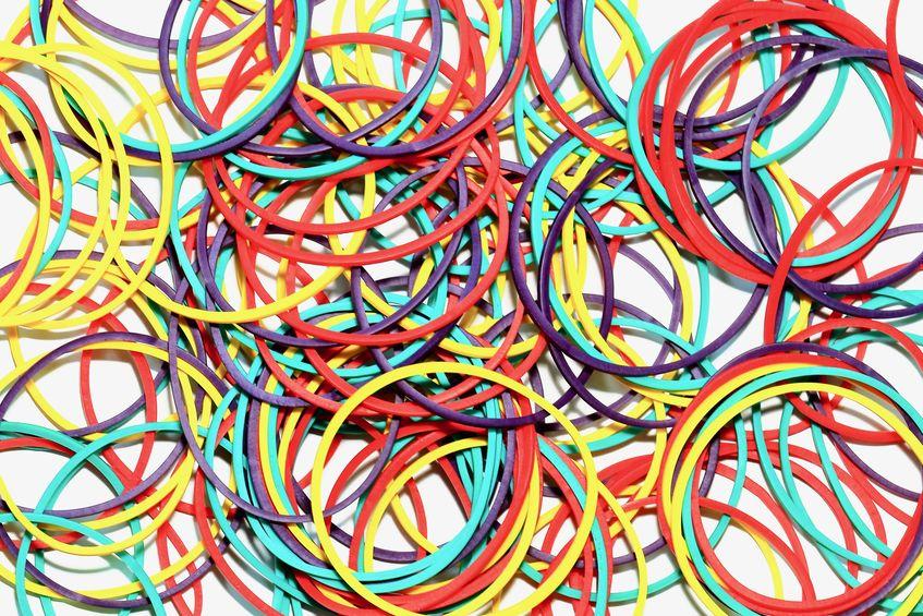 コードを束ねるとき、輪ゴムや結束バンドを使えばバラバラにならずに留められる。電源タップなどのように複数のコードが混在しやすい場所では、留めるゴムやバンドの色を変えたりマスキングテープなどで「テレビ」や「DVDレコーダー」のように家電の名前を記したりしておくと管理がしやすい。