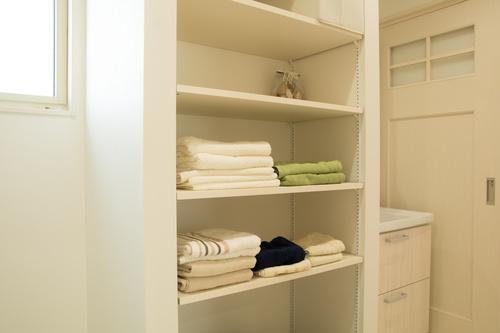 バスタオルは、使用する機会の多い洗面所や脱衣所に収納すると使い勝手も向上する。すでに棚が設置されている場合でもスペースが不足する場合は、新たに棚などを設置したり、ラックなどを利用したりするのもおすすめだ。