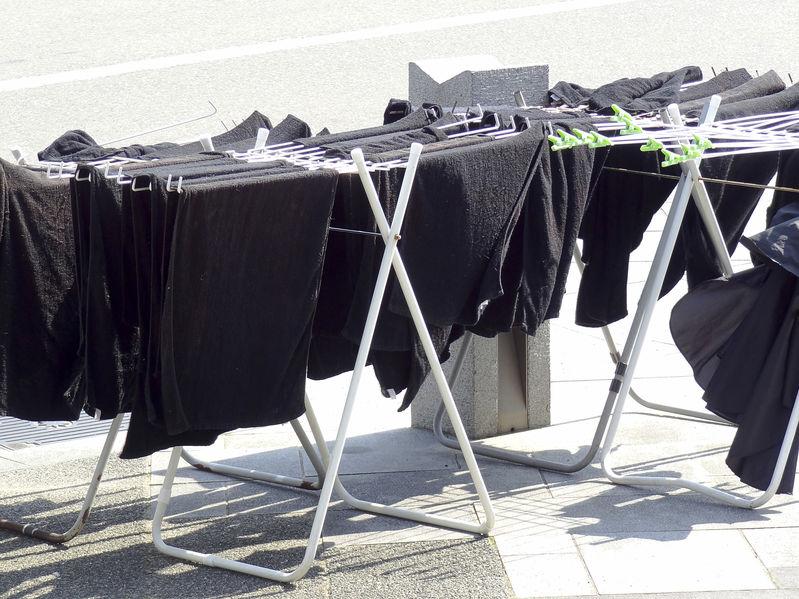タオルが一度に20枚干せる大容量タイプ。ステンレス製のため丈夫で、屋外でも安心して長く使用できる。