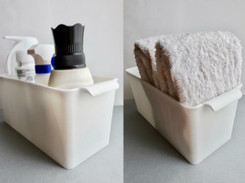 タオルを収納するのもおすすめだ。フェイスタオルをたたんで並べておけば、上からさっと取り出して使えるだけでなく、スリムな形状なため、残りのタオルが倒れない。