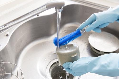 2.取り外したパーツは、スポンジや使い古しの歯ブラシなどを使用して中性洗剤で洗う