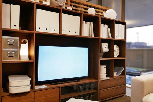 テレビボードなどのロータイプの壁面収納もある。部屋が広く見えるため、収納力とのバランスがよいタイプだ。