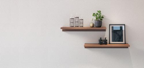 壁面収納は、飾り棚や見せる収納も取り入れやすい。収納スペースとしてだけではなく、オシャレなインテリアとしても活躍する。