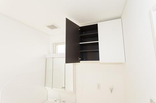洗面所は洗濯機や洗面台があるため、スペースが限られていることも多い。壁面収納をうまく取り入れていこう。