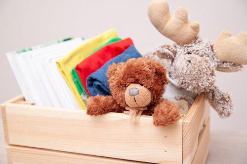 子ども服を収納したボックスなどに、イラストなどを使って子どもにもわかりやすいラベルやタグを付ける。どこに何が入っているのかがわかれば、取り出しやすく戻しやすくなる。