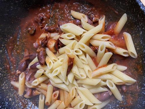 Step.4 茹でたペンネを入れてトマトソースと合わせる
