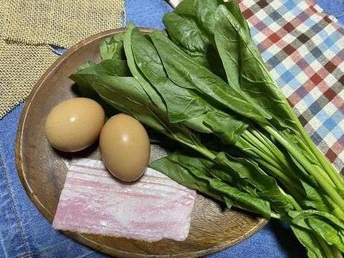 炒めたほうれん草とベーコンを、2つのかたまりに分ける。