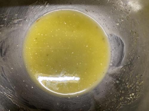 オリーブオイルと酢をボウルに入れ、乳化するまで混ぜる。
