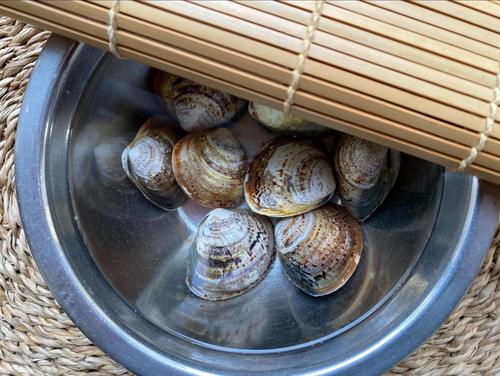 はまぐりは塩水につけて暗い場所に一晩おき、砂抜きをする。