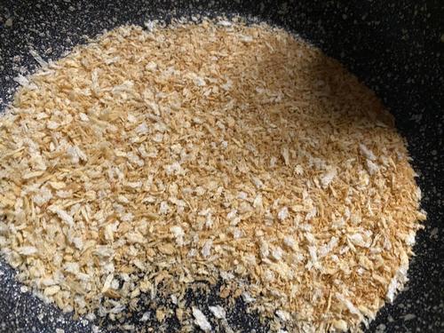 フライパンを火にかけ、パン粉を入れてきつね色になるまで煎る。