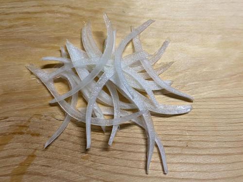 玉ねぎは薄くスライスし、塩で揉んで水分を出す。