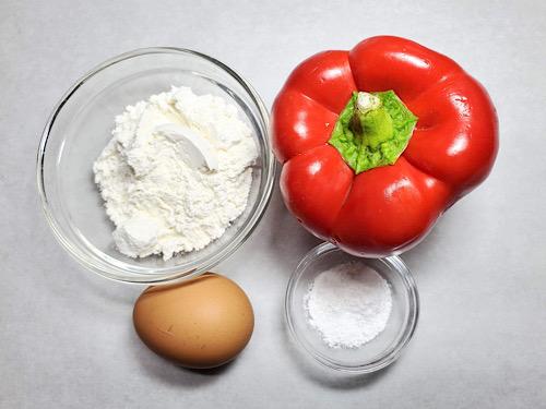 パプリカの皮がツルッとしていて、そのままだと揚げながら衣がはがれてしまうので、片栗粉を表面にまぶしておく。ビニール袋にパプリカと片栗粉を入れたら、口を閉じてよく振ると、内側にも片栗粉がまんべんなくいきわたる。