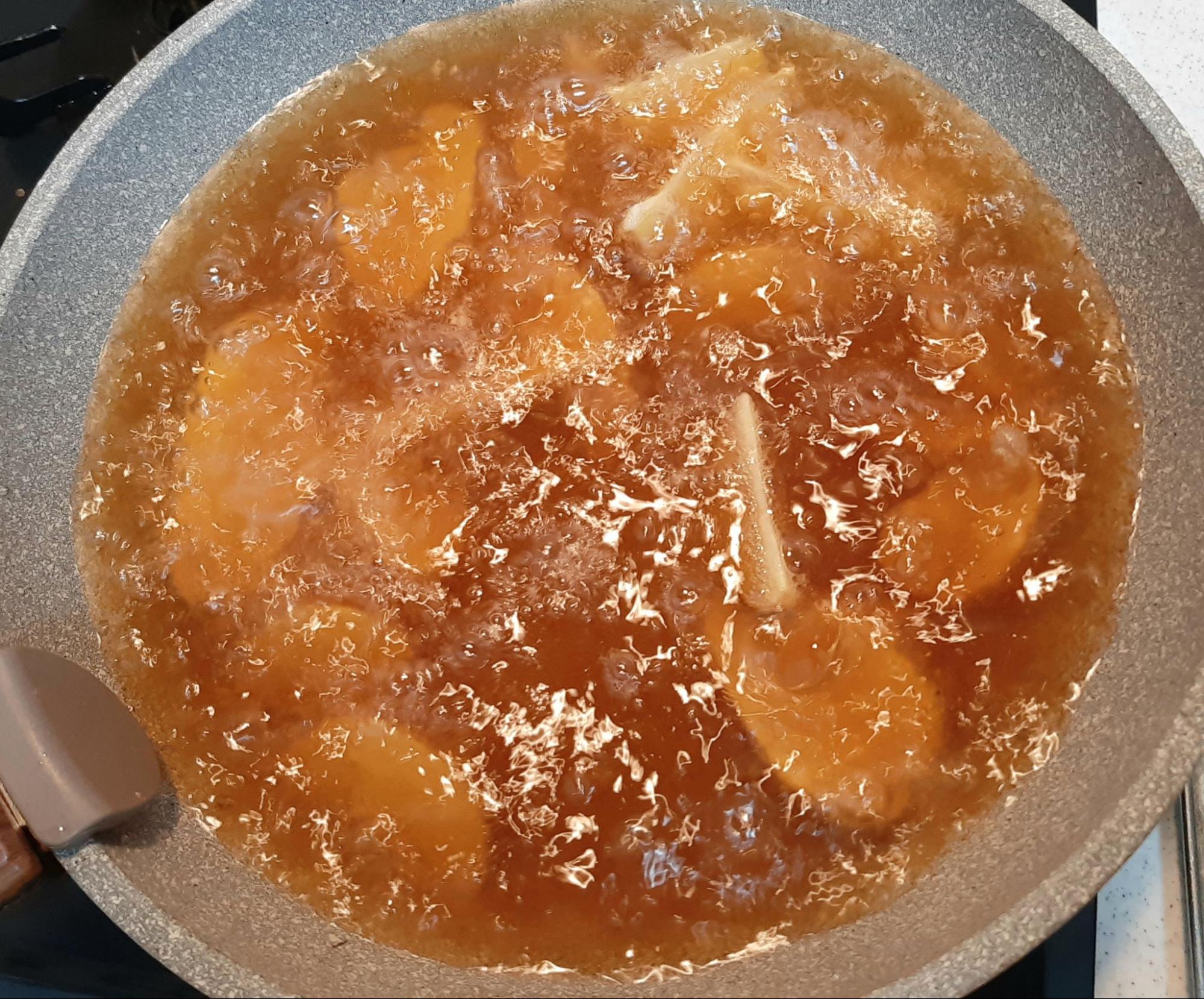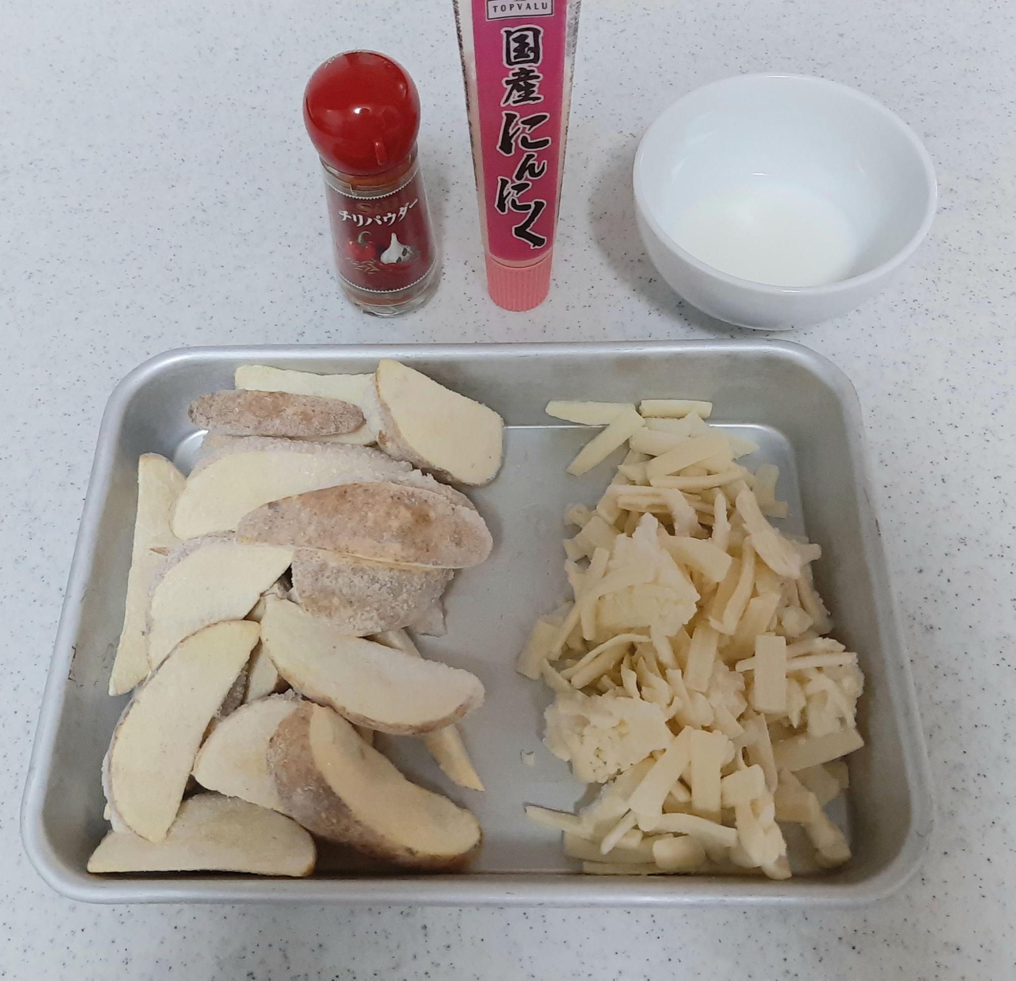 冷凍フライドポテトを180度の油で3分程度カリッとなるまで揚げる