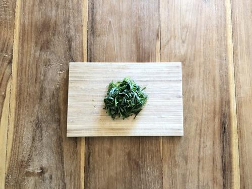 大葉は軽く流水で洗って水気をきり、千切りにする。