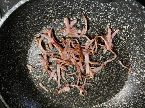 ベーコンは細く切る。