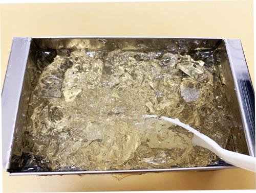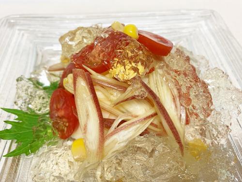Step.1 白だしをゼラチンで固め、フォークでくずしジュレを作る