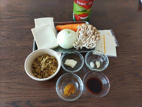 全体的に混ざったらカレールーとバターを加える。カレールーは残っている水分量によって量が変わるので様子を見ながら加える。最後にめんつゆで味を調え、全体的にまとまったら完成。好みで盛り付けの際にスライスチーズを乗せても美味しい。