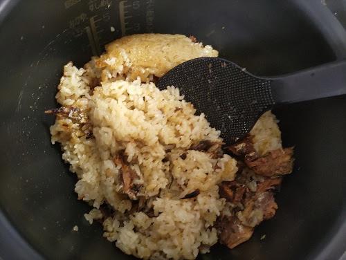 めんつゆを加えて通常通り炊飯する。