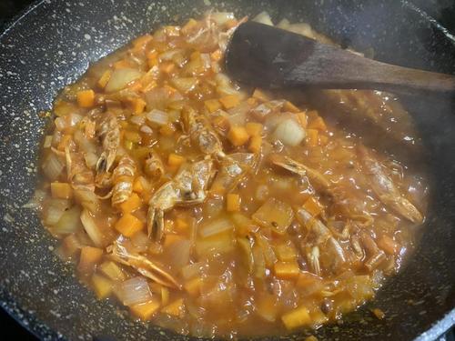 ここではほかの料理で余った殻を使う前提の為、身は使用しない。