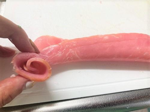 Step.2 ベーコンを薔薇状に巻く