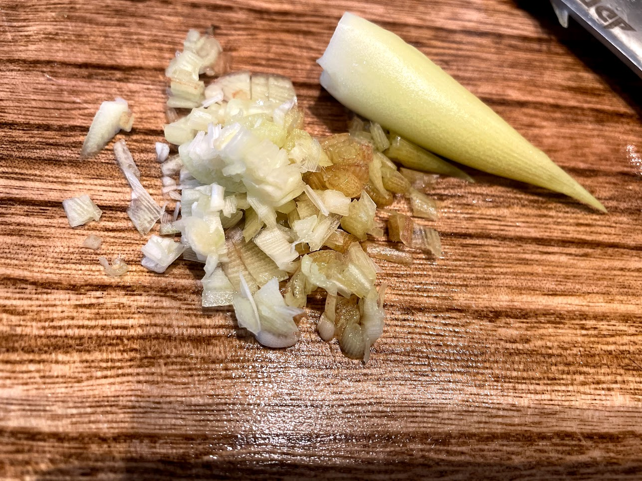 取り出した中身は包丁でみじん切りにして3㎜程度になるよう、細かく刻む。