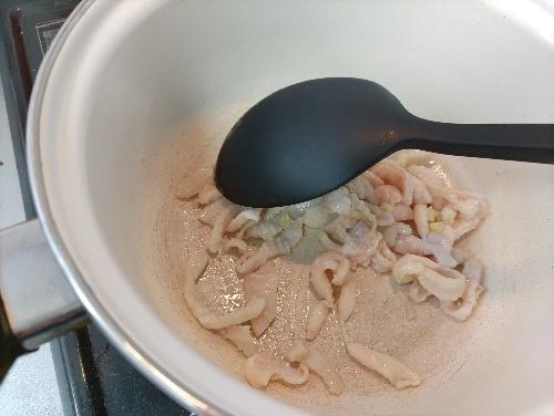 Step.2 鶏皮の脂を出すように炒める