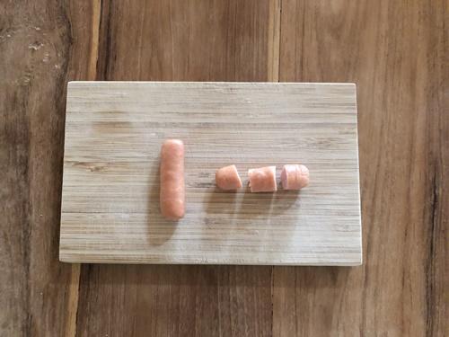 ソーセージをたこ焼き器に入る程度の大きさに3等分に切る。
