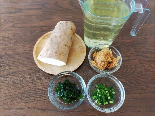 山芋は皮をむき、すりおろしてとろろにしておく。