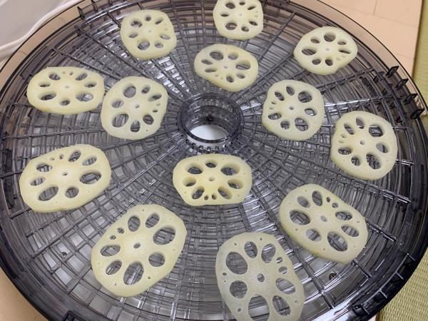 今回は干しあがった状態で各10gを使用する。市販の干しレンコンも販売されているので、そちらを使ってもよい。