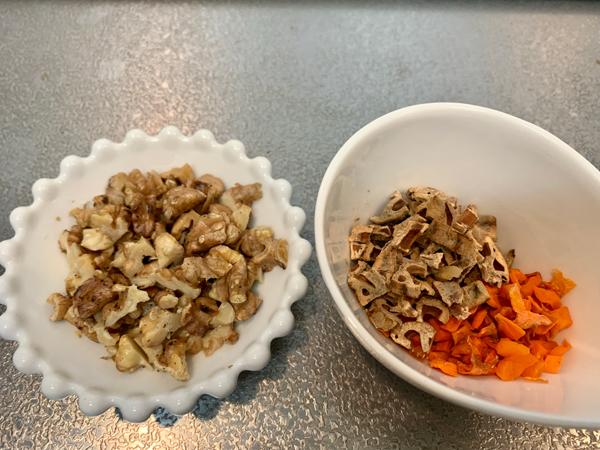 干し野菜はほかの野菜に変えてもいいし、ナッツはくるみ以外では松の実などもよい。