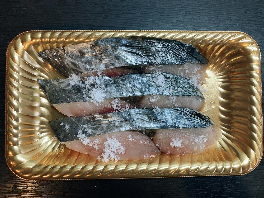 ペーパータオルなどで軽く水分をふきとってから、さわらに塩をふりかける。魚は水分が出やすいため、焼く直前に塩をふりかけるようにするとよいだろう。