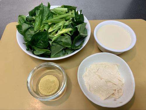 Step.1 ほうれん草を切って下処理する。湯葉に下味をつける