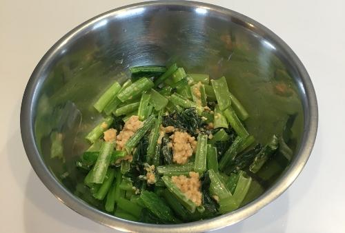 小松菜と和え衣をまんべんなく混ぜあわせる。