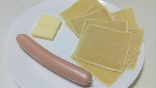 魚肉ソーセージとチーズを皮の大きさに合わせて切る。餃子の皮を使用する場合は、もう少し小さく切り分けると巻きやすい。切るのが簡単な食材だから、子どもと一緒にやっても楽しい。