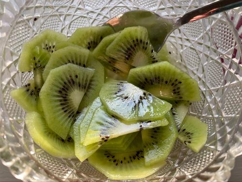 分量の蜂蜜とレモン汁をボウルで混ぜ、切ったキウイを入れてよく和える。そのままラップをして、冷蔵庫で15分漬け込む。