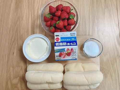 いちごは洗ってヘタを落とす。4個はパンの飾り付け用にスライスする。