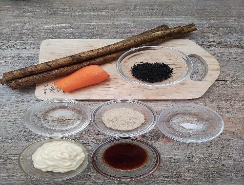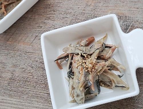 ひじきは多めのぬるま湯で戻しておく。にんじんは皮を剥き千切りに、ごぼうは流水でしっかり洗い、えんぴつを削るように包丁でそぐ。もしくは、縦半分に切ったごぼうを斜めスライスのように切っても問題ない。どちらも厚さにばらつきがでるので食感が楽しくなる。