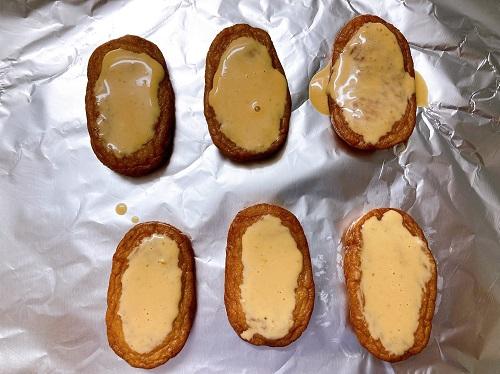 Step.2 さつま揚げに辛子マヨを塗る