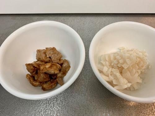 Step.3 豚肉とロールイカを下処理する。
