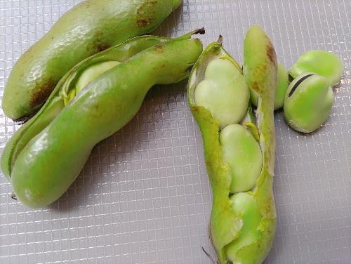 米が炊けるまでにそら豆のうす皮を剥いておく。