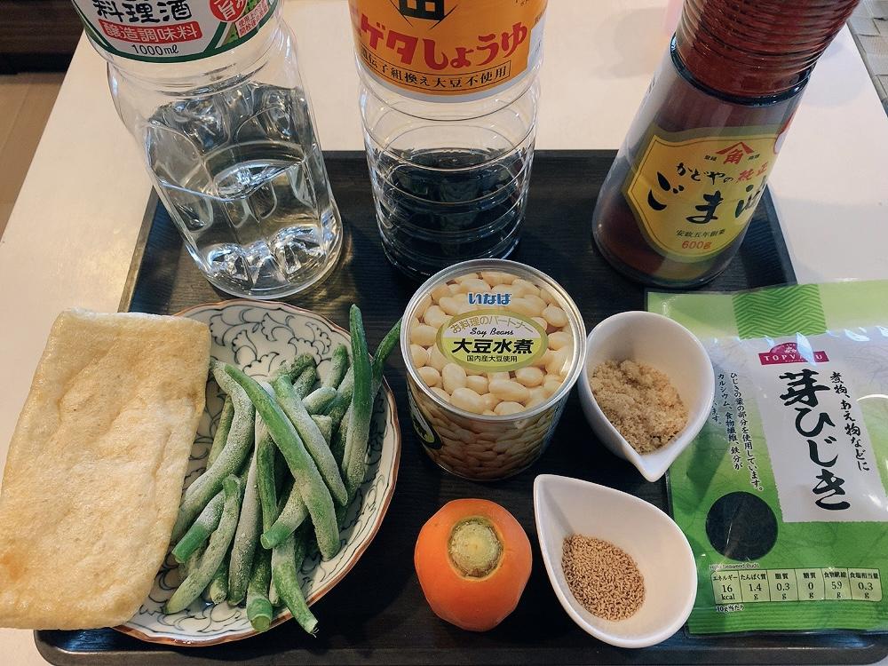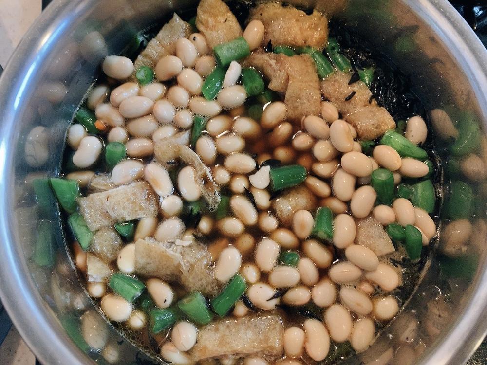 にんじんは細切り、いんげんは小口切り、油揚げは短冊切りにしておく。
