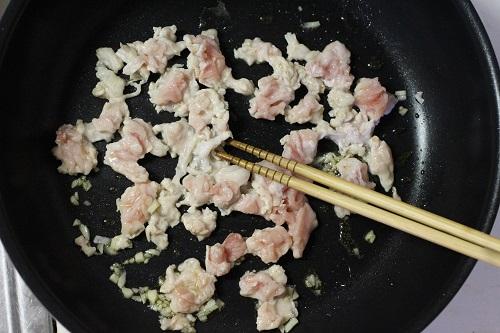 Step.3 にんにく、豚肉を炒める