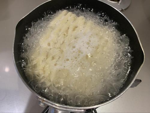 ここで茹ですぎないように注意する。ほぐしながら麺を茹でるのがポイント。