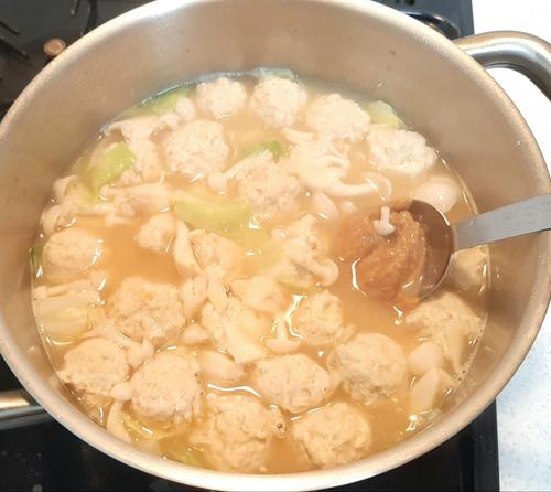 Step.3 沸騰した鍋に丸めた鶏団子を入れる