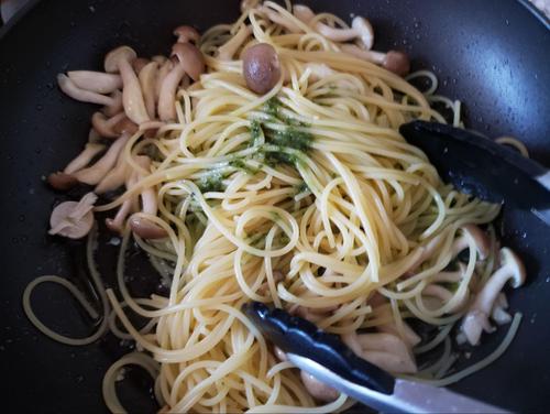 パスタを茹でておく。茹で時間は、指定の時間よりも30秒短めにする。