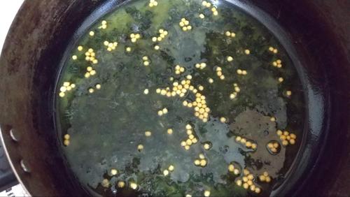 片栗粉を海苔茶漬けの素とよく混ぜて、水160mlを入れて更によく混ぜる。フライパンに入れる前に、ここでよく溶かしておくことがポイントだ。