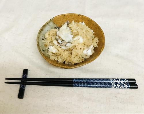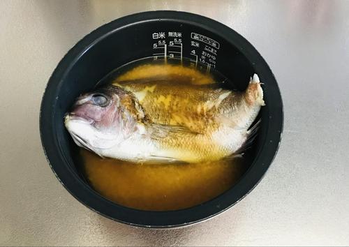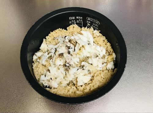 その上に焼いた鯛を乗せ炊飯する。
