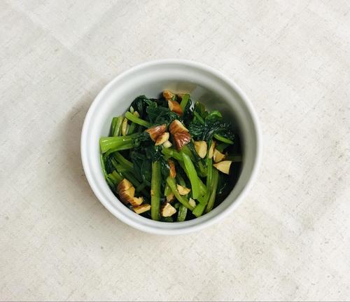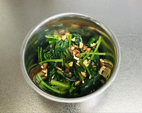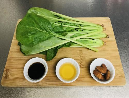 ボウルにほうれん草、アーモンド、調味料を入れて混ぜたら完成。
