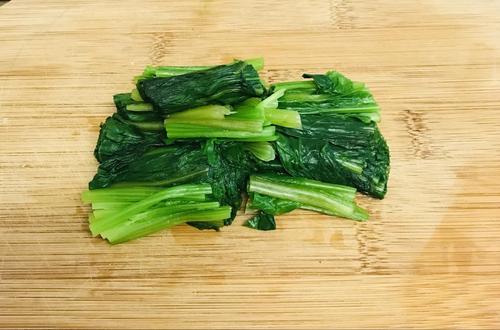 お湯を沸かしほうれん草をサッと茹で、水けを絞る。2~3cm幅に切っておく。
